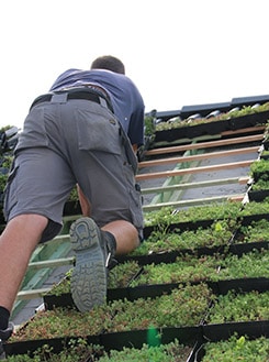 De nieuwe groene dakpannen zijn gemaakt van gerecycled kunststof en zijn niets minder dan een kleine plantenbak met sedum. Sedum houdt water goed vast, biedt ruimte voor biodiversiteit én ziet er fraai uit! Als je nieuwsgierig bent hoe het vervangen van de dakpannen in z’n werk gaat kan je zaterdag 1 juli tussen 10:00 en 15:00 door de Havannastraat lopen om te kijken naar de arbeid die wordt verzet. Een handje helpen is niet nodig.